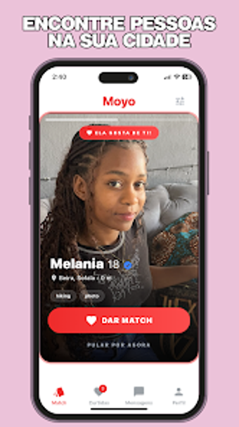 Moyo är en dejtingapp som syftar till att förena människor i Moçambique. Den erbjuder en plattform för att hitta nya vänner eller potentiella partners genom att matcha profiler baserat på gemensamma intressen. Användare kan enkelt navigera genom profiler och visa intresse genom att svepa, vilket gör processen både rolig och interaktiv. Med funktioner som realtidschatt kan användare kommunicera snabbt och säkert med sina matchningar, vilket underlättar skapandet av nya relationer.
